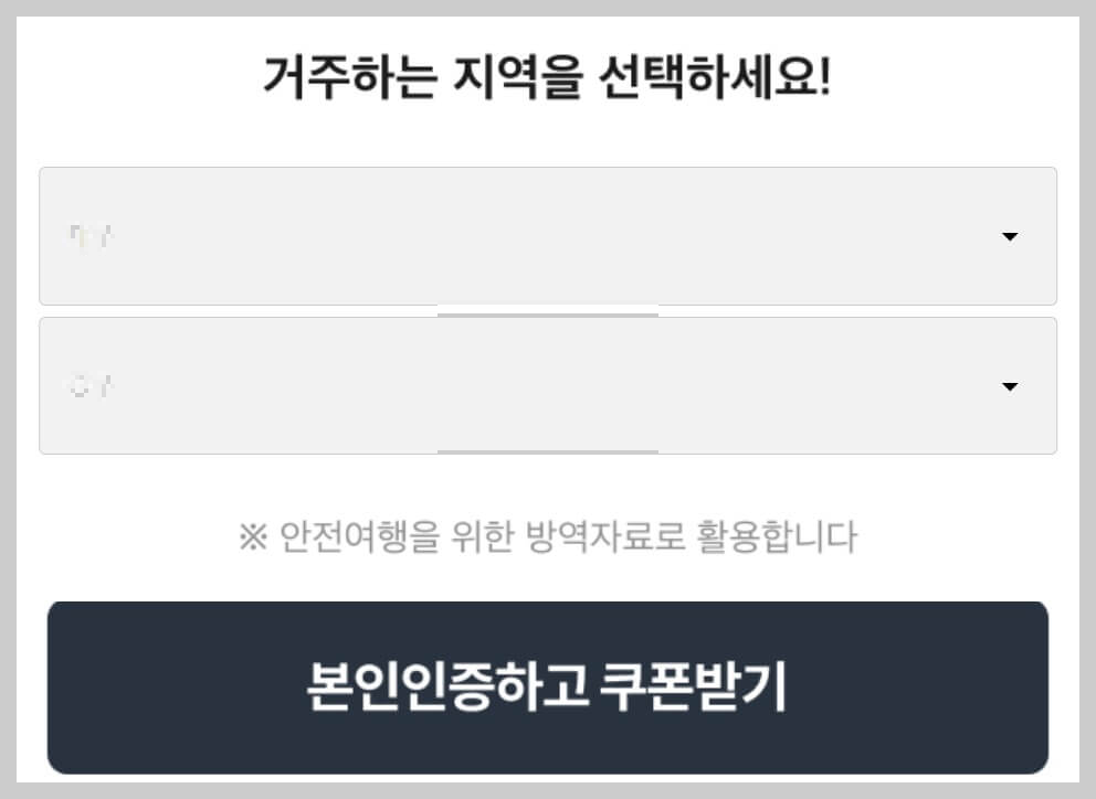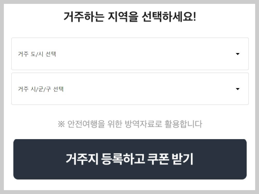 1. 위에 있는 할인 쿠폰 즉시 받기를 누르시고, 거주하는 지역을 등록합니다.