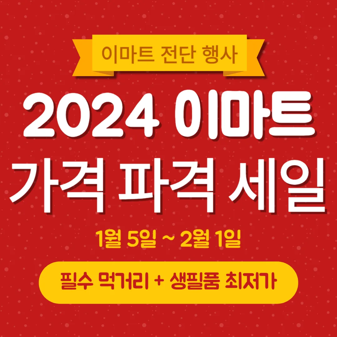 이마트에서 2024년부터 매월 3개 인기 먹거리 행사 품목을 선정하여 할인 행사 때보다 더 저렴하게 가격을 책정하여 초저가 할인 행사 진행할 예정입니다. 동시에 구매가 많은 가공식품과 생필품 40개를 할인 행사 품목으로 월별마다 파격 세일 할 예정입니다.