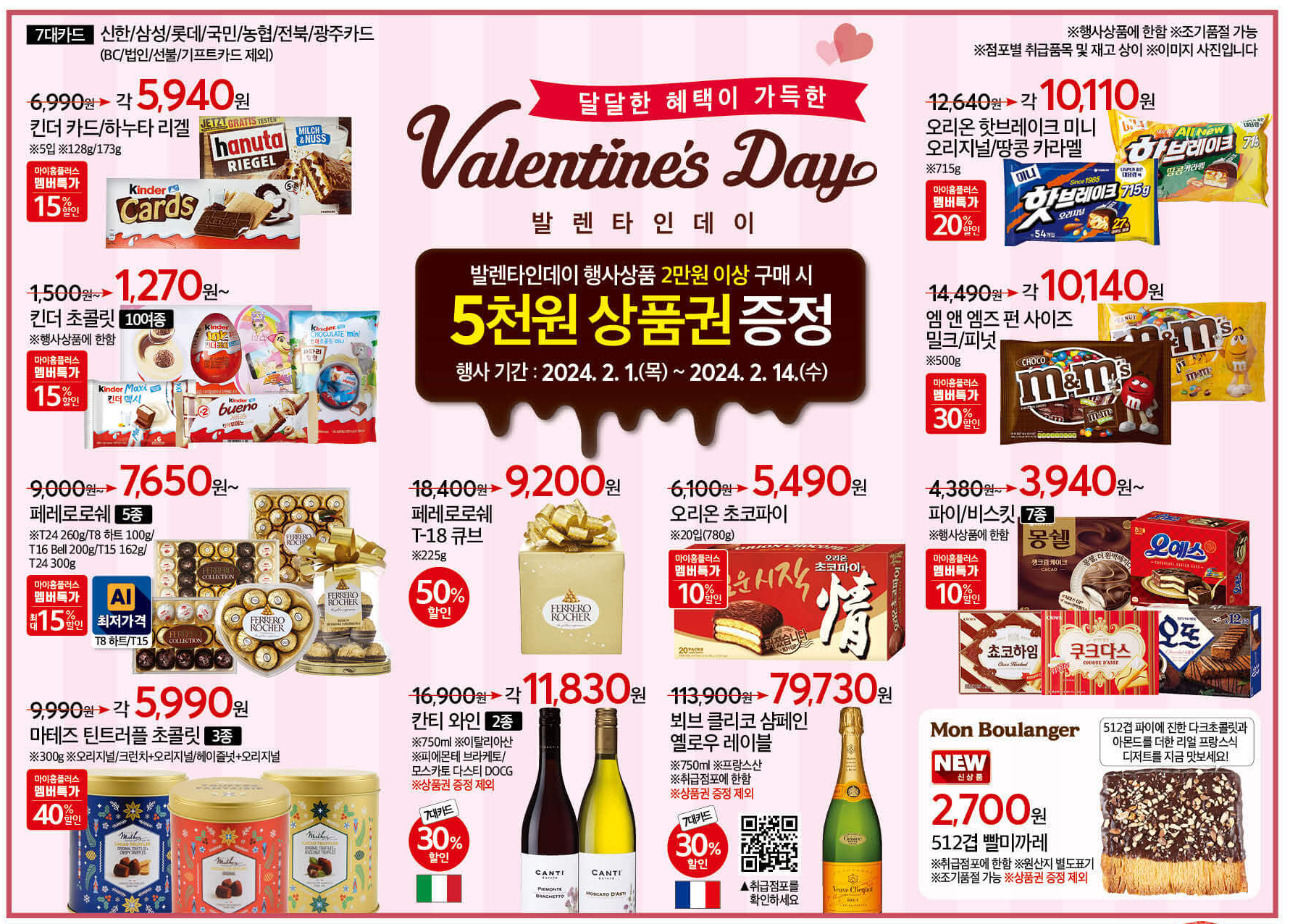 - 홈플러스 발렌타인데이 행사상품 2만 원 이상 구매 시 5천 원 상품권 증정