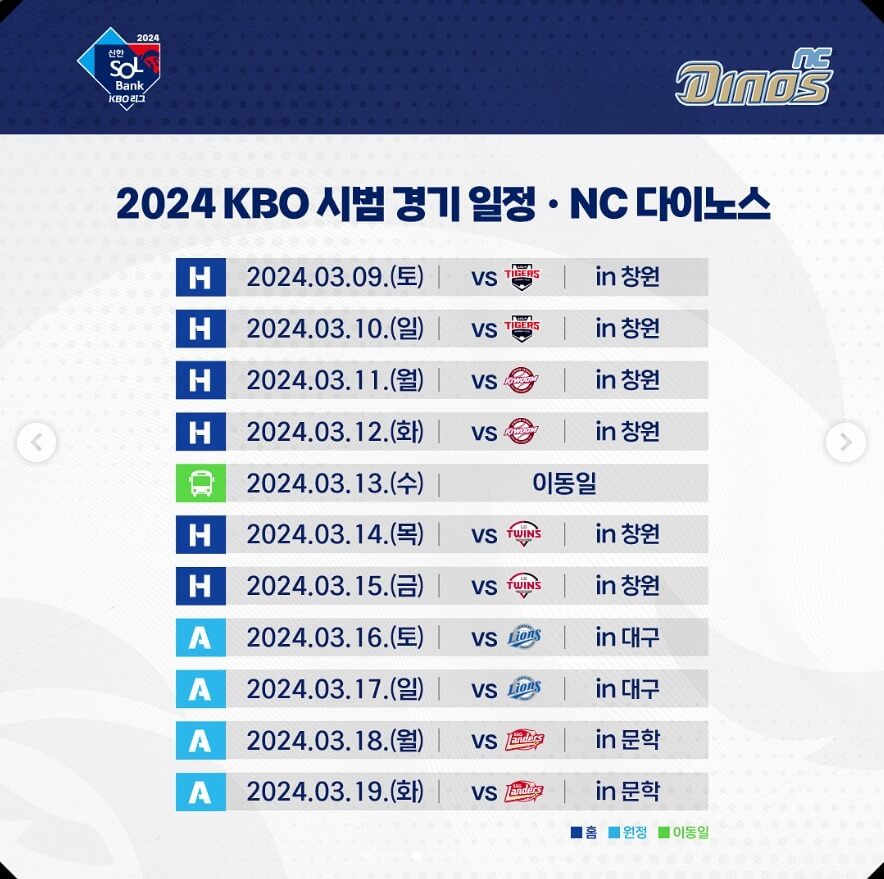 ✅ NC 다이노스 : 창원 > 대구 > 문학 (홈 6경기)