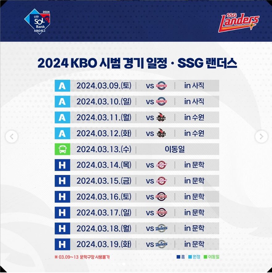 ✅ SSG 랜더스 : 사직 > 수원 > 문학 (홈 6경기)